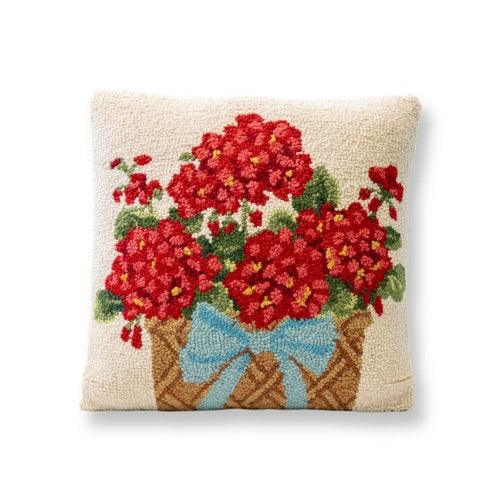 Pillow - Hook Geranium Basket Red Floral