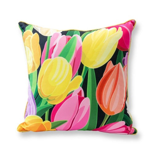 Pillow - Custom Grand Hotel Tulips on Jet Black